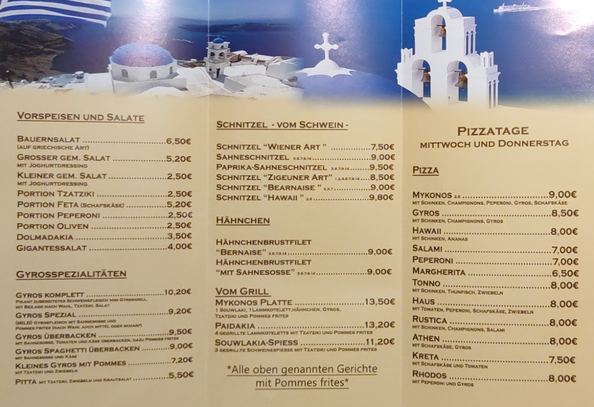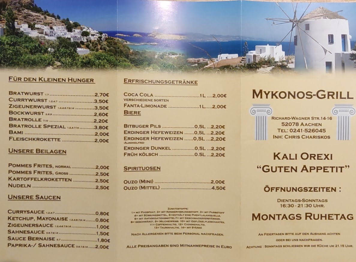 Welcome to Mykonos-Grill - Germany, a delightful gyro restaurant nestled in Aachen. Known for its authentic Greek flavors, this gem offers hand-crafted gyros that are both satisfying and rich in taste. Reviewers have praised the succulent meat, though some suggest a touch more juiciness. Accompanying this are perfectly baked fries and a refreshingly crisp salad, ensuring a well-rounded meal.